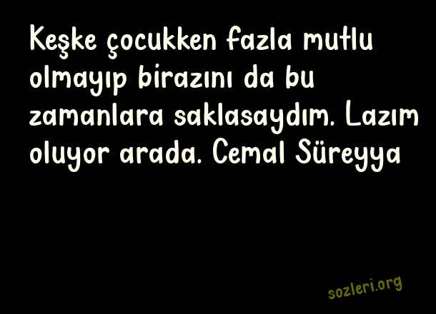 Keşke çocukken fazla mutlu olmayıp birazını da bu zamanlara saklasaydım. Lazım oluyor arada. Cemal Süreyya ( Evlat İle İlgili Güzel Sözler )