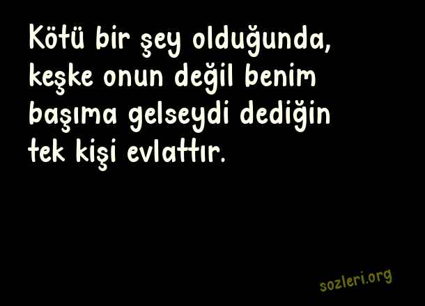 Kötü bir şey olduğunda, keşke onun değil benim başıma gelseydi dediğin tek kişi evlattır. ( Evlat İle İlgili Güzel Sözler )