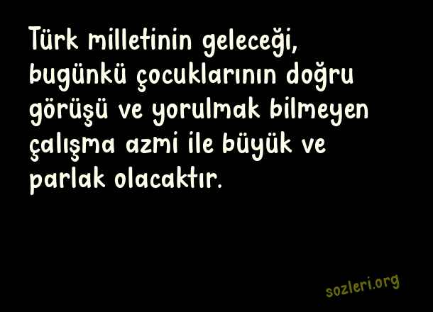 Türk milletinin geleceği, bugünkü çocuklarının doğru görüşü ve yorulmak bilmeyen çalışma azmi ile büyük ve parlak olacaktır. ( Evlat İle İlgili Güzel Sözler )