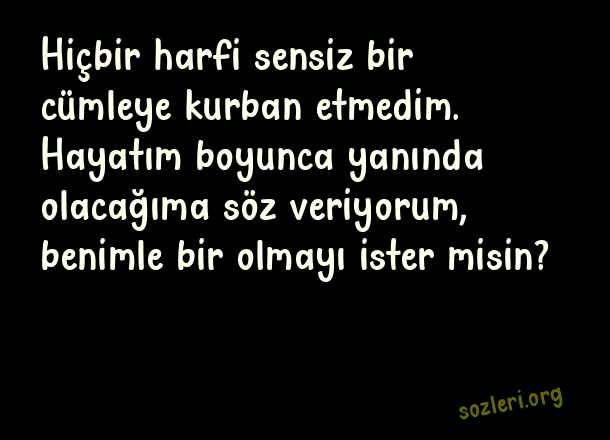 Hiçbir harfi sensiz bir cümleye kurban etmedim. Hayatım boyunca yanında olacağıma söz veriyorum, benimle bir olmayı ister misin? ( Evlilik Teklifi )