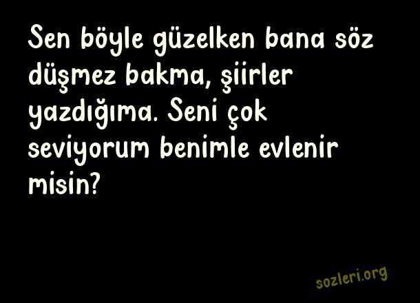 Sen böyle güzelken bana söz düşmez bakma, şiirler yazdığıma. Seni çok seviyorum benimle evlenir misin? ( Evlilik Teklifi )
