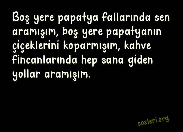 Boş yere papatya fallarında sen aramışım, boş yere papatyanın çiçeklerini koparmışım, kahve fincanlarında hep sana giden yollar aramışım. ( Fal )