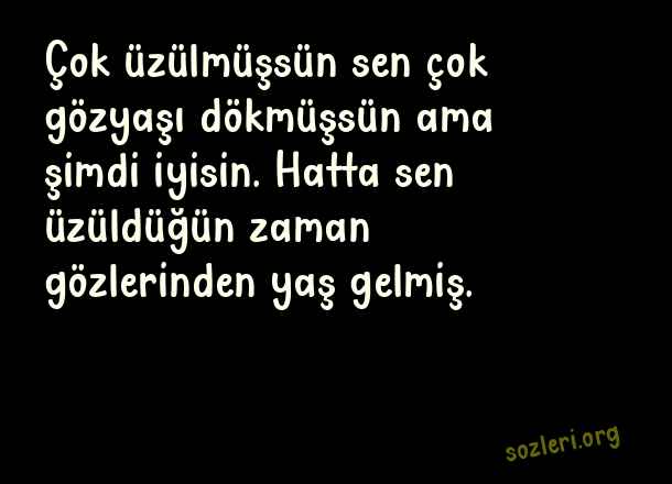 Çok üzülmüşsün sen çok gözyaşı dökmüşsün ama şimdi iyisin. Hatta sen üzüldüğün zaman gözlerinden yaş gelmiş. ( Fal )