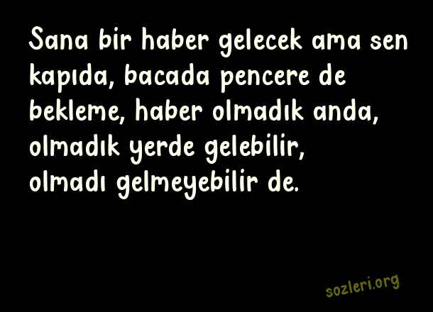 Sana bir haber gelecek ama sen kapıda, bacada pencere de bekleme, haber olmadık anda, olmadık yerde gelebilir, olmadı gelmeyebilir de. ( Fal )