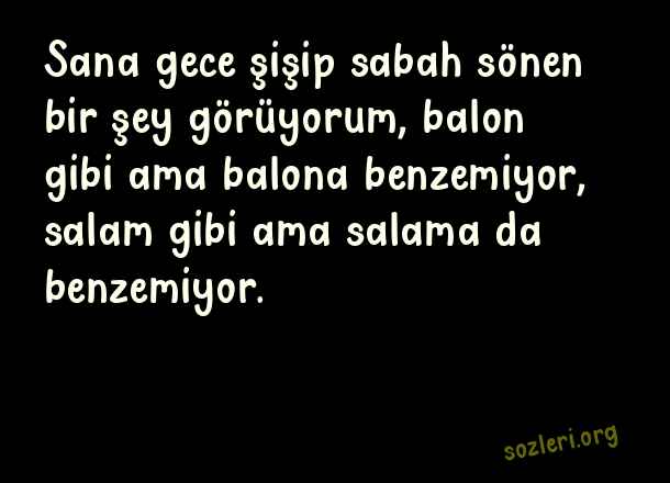 Sana gece şişip sabah sönen bir şey görüyorum, balon gibi ama balona benzemiyor, salam gibi ama salama da benzemiyor. ( Fal )