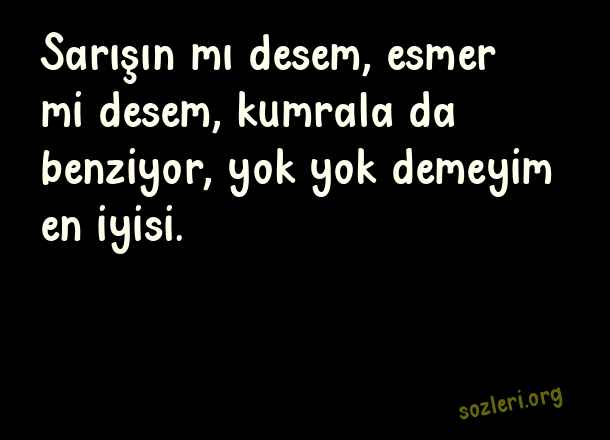 Sarışın mı desem, esmer mi desem, kumrala da benziyor, yok yok demeyim en iyisi. ( Fal )