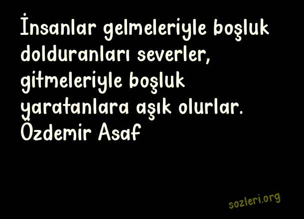 İnsanlar gelmeleriyle boşluk dolduranları severler, gitmeleriyle boşluk yaratanlara aşık olurlar. Özdemir Asaf ( Felsefi Aşk )