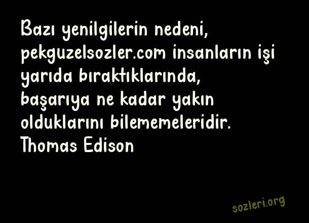 Bazı yenilgilerin nedeni, insanların işi yarıda bıraktıklarında, başarıya ne kadar yakın olduklarını bilememeleridir. Thomas Edison ( Fitness )