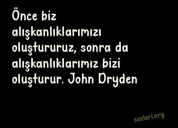 Önce biz alışkanlıklarımızı oluştururuz, sonra da alışkanlıklarımız bizi oluşturur. John Dryden ( Fitness )