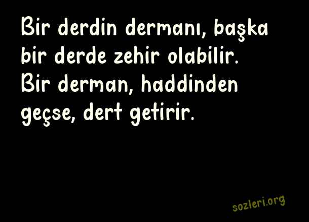 Bir derdin dermanı, başka bir derde zehir olabilir. Bir derman, haddinden geçse, dert getirir. ( Fotoğraf )