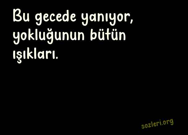 Bu gecede yanıyor, yokluğunun bütün ışıkları.