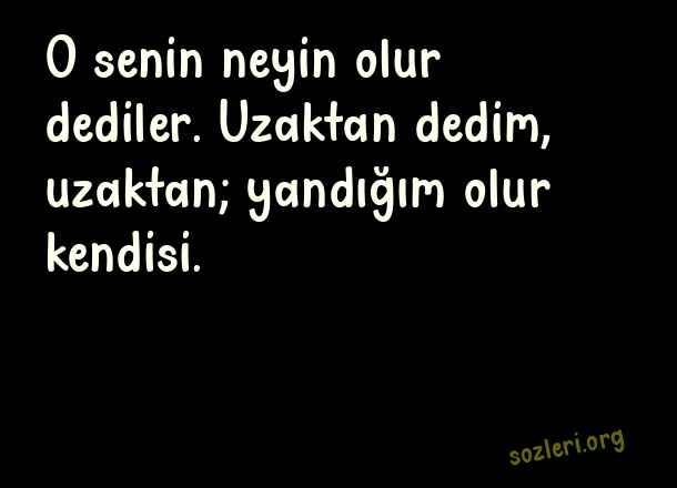 O senin neyin olur dediler. Uzaktan dedim, uzaktan; yandığım olur kendisi. ( Sevgiliyle Fotoğrafın Altına Yazılacak Sözler )