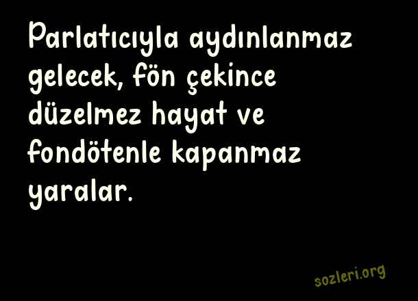 Parlatıcıyla aydınlanmaz gelecek fön çekince düzelmez hayat ve fondötenle kapanmaz yaralar.