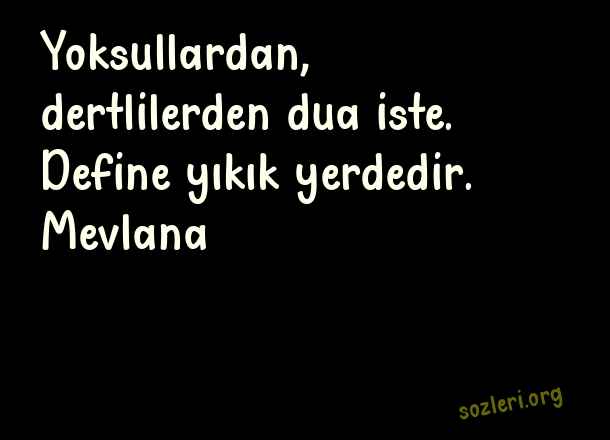 Yoksullardan, dertlilerden dua iste. Define yıkık yerdedir. Mevlana ( Fotoğraf )