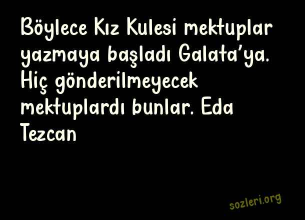 Böylece Kız Kulesi mektuplar yazmaya başladı Galata’ya. Hiç gönderilmeyecek mektuplardı bunlar. Eda Tezcan ( Galata Kulesi )