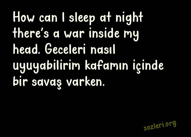 How can l sleep at night there’s a war inside my head. Geceleri nasıl uyuyabilirim kafamın içinde bir savaş varken. ( Gece İle İlgili İngilizce Sözler )