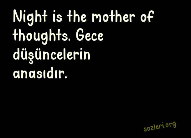 Night is the mother of thoughts. Gece düşüncelerin anasıdır. ( Gece İle İlgili İngilizce Sözler )