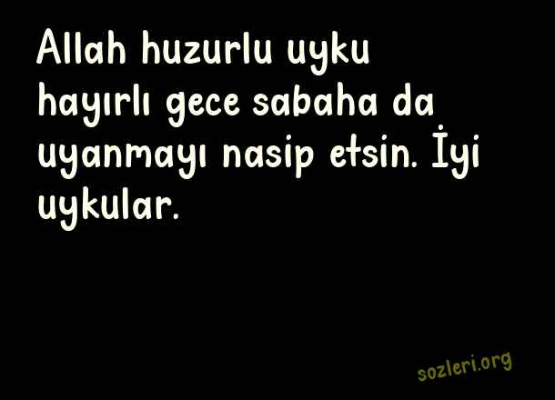 Allah huzurlu uyku hayırlı gece sabaha da uyanmayı nasip etsin. İyi uykular. ( Hayırlı Geceler )