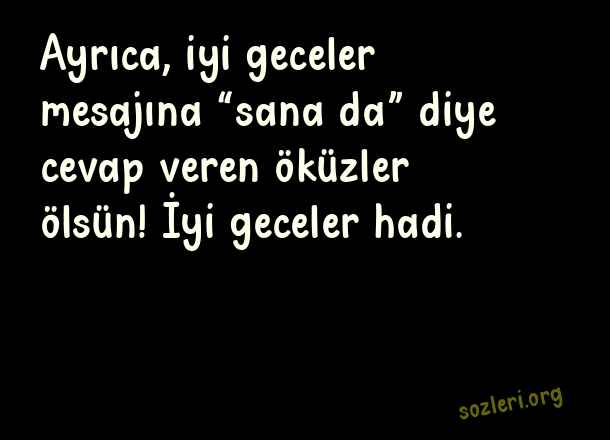 Ayrıca, iyi geceler mesajına “sana da” diye cevap veren öküzler ölsün! İyi geceler hadi. ( Komik İyi Geceler )