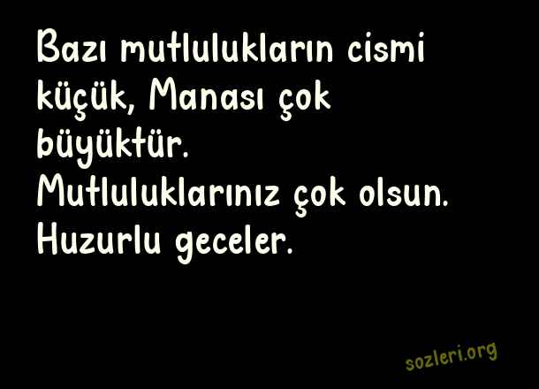 Bazı mutlulukların cismi küçük, Manası çok büyüktür. Mutluluklarınız çok olsun. Huzurlu geceler. ( Hayırlı Geceler )