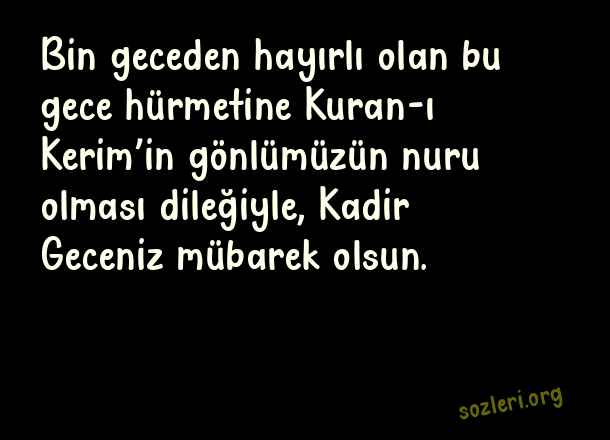 Bin geceden hayırlı olan bu gece hürmetine Kuran-ı Kerim’in gönlümüzün nuru olması dileğiyle, Kadir Geceniz mübarek olsun. ( Kadir Gecesi İle İlgili Kutlama )