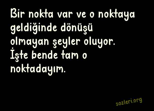 Bir nokta var ve o noktaya geldiğinde dönüşü olmayan şeyler oluyor. İşte bende tam o noktadayım. ( Geceye Bir Söz Bırak )