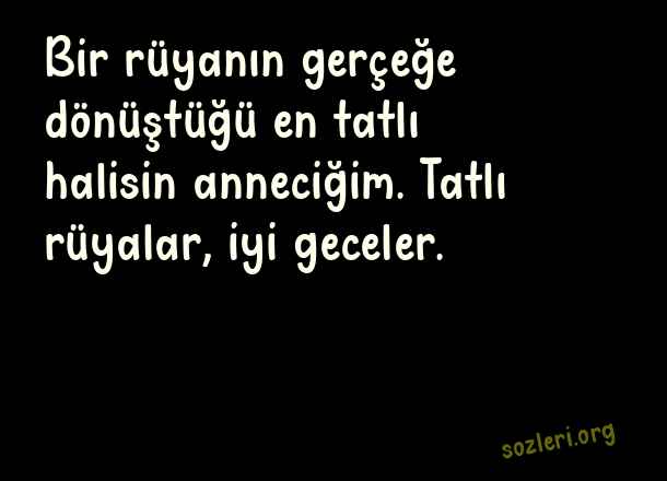 Bir rüyanın gerçeğe dönüştüğü en tatlı halisin anneciğim. Tatlı rüyalar, iyi geceler. ( Anneye İyi Geceler )