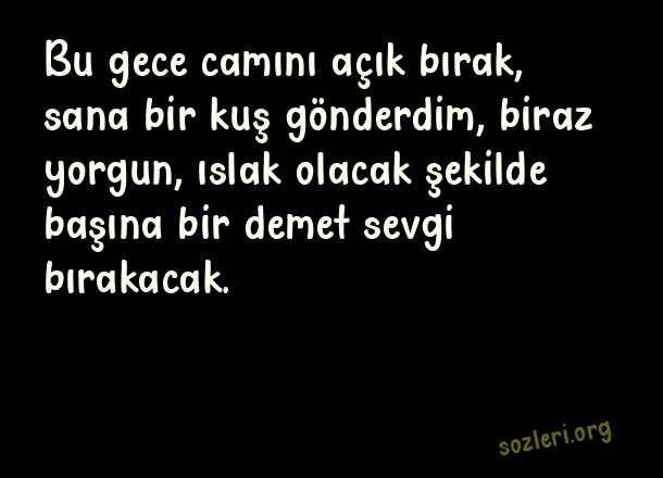 Bu gece camını açık bırak, sana bir kuş gönderdim, biraz yorgun, ıslak olacak şekilde başına bir demet sevgi bırakacak. ( Geceye Bir Söz Bırak )