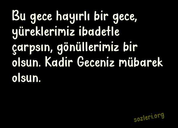 Bu gece hayırlı bir gece, yüreklerimiz ibadetle çarpsın, gönüllerimiz bir olsun. Kadir Geceniz mübarek olsun. ( Kadir Gecesi İle İlgili Kutlama )