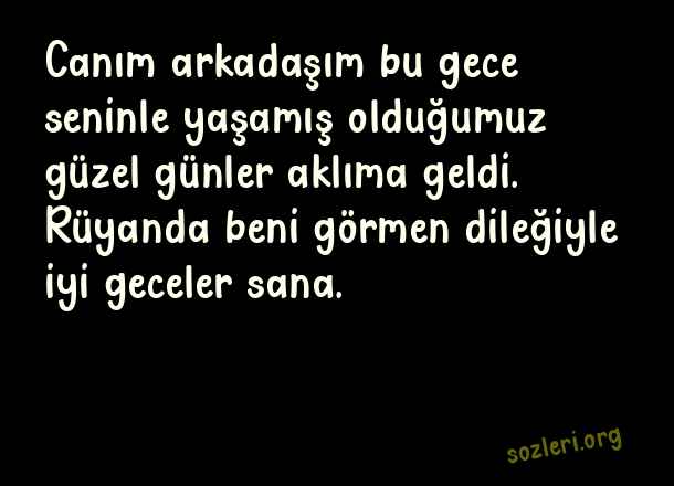 Canım arkadaşım bu gece seninle yaşamış olduğumuz güzel günler aklıma geldi. Rüyanda beni görmen dileğiyle iyi geceler sana. ( Arkadaşa İyi Geceler )
