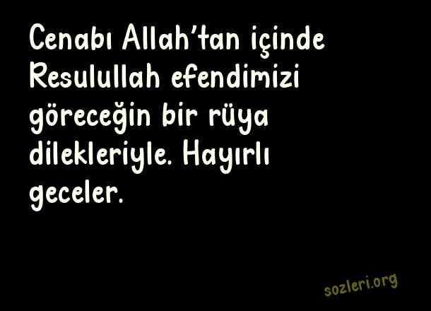 Cenabı Allah’tan içinde Resulullah efendimizi göreceğin bir rüya dilekleriyle. Hayırlı geceler. ( İyi Geceler )