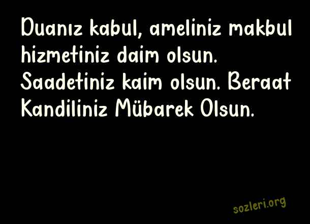 Duanız kabul, ameliniz makbul hizmetiniz daim olsun. Saadetiniz kaim olsun. Beraat Kandiliniz Mübarek Olsun. ( Kadir Gecesi İle İlgili Kutlama )