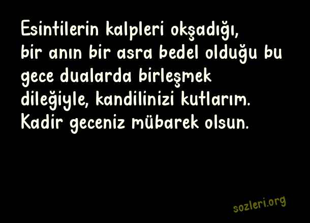Esintilerin kalpleri okşadığı, bir anın bir asra bedel olduğu bu gece dualarda birleşmek dileğiyle, kandilinizi kutlarım. Kadir geceniz mübarek olsun. ( Kadir Gecesi Telefon )