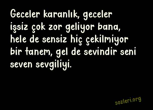 Geceler karanlık, geceler işsiz çok zor geliyor bana, hele de sensiz hiç çekilmiyor bir tanem, gel de sevindir seni seven sevgiliyi. ( İyi Geceler )