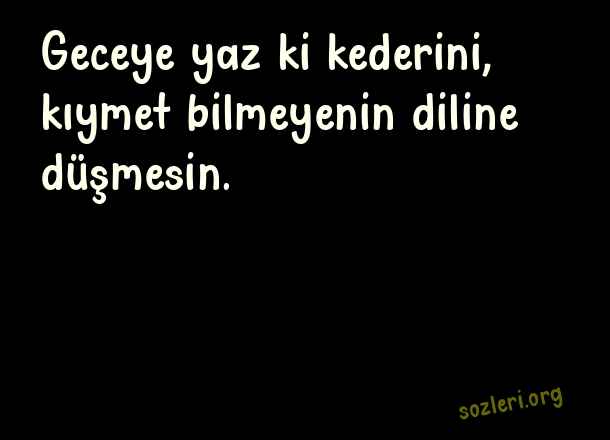 Geceye yaz ki kederini, kıymet bilmeyenin diline düşmesin. ( Geceye Notlar )