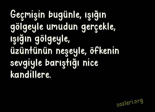 Geçmişin bugünle, ışığın gölgeyle umudun gerçekle, ışığın gölgeyle, üzüntünün neşeyle, öfkenin sevgiyle barıştığı nice kandillere. ( Kadir Gecesi İle İlgili Kutlama )