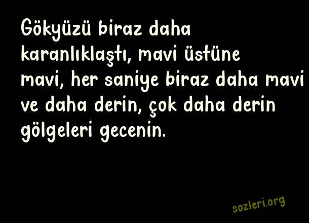 Gökyüzü biraz daha karanlıklaştı, mavi üstüne mavi, her saniye biraz daha mavi ve daha derin, çok daha derin gölgeleri gecenin. ( Gece )