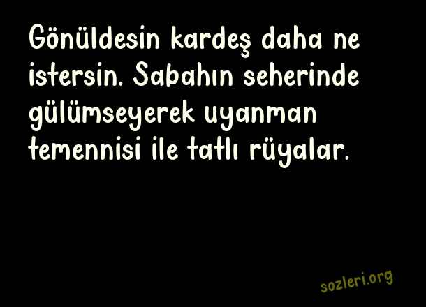 Gönüldesin kardeş daha ne istersin. Sabahın seherinde gülümseyerek uyanman temennisi ile tatlı rüyalar. ( Arkadaşa İyi Geceler )
