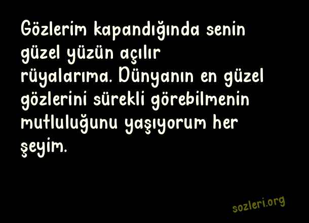 Gözlerim kapandığında senin güzel yüzün açılır rüyalarıma. Dünyanın en güzel gözlerini sürekli görebilmenin mutluluğunu yaşıyorum her şeyim. ( İnstagram İyi Geceler )