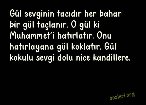 Gül sevginin tacıdır her bahar bir gül taçlanır. O gül ki Muhammet’i hatırlatır. Onu hatırlayana gül koklatır. Gül kokulu sevgi dolu nice kandillere. ( Kadir Gecesi )