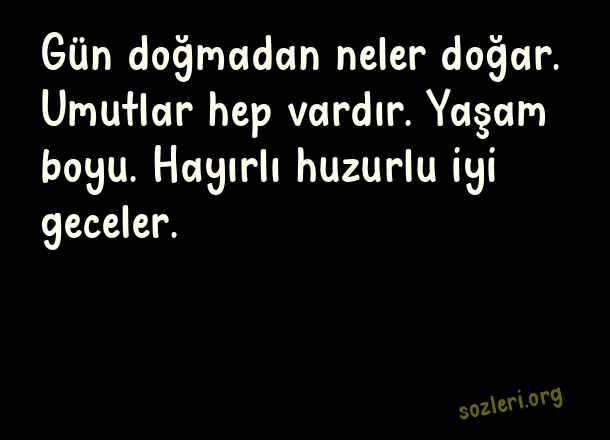 Gün doğmadan neler doğar. Umutlar hep vardır. Yaşam boyu. Hayırlı huzurlu iyi geceler. ( Hayırlı Geceler )