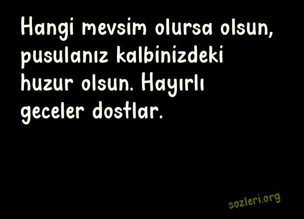 Hangi mevsim olursa olsun, pusulanız kalbinizdeki huzur olsun. Hayırlı geceler dostlar. ( Hayırlı Geceler )