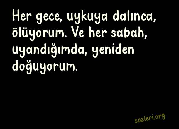 Her gece, uykuya - Gece İle İlgili Sözler .. Her gece, uykuya dalınca, ölüyorum. Ve her sabah, uyandığımda, yeniden doğuyorum. ( Gece )