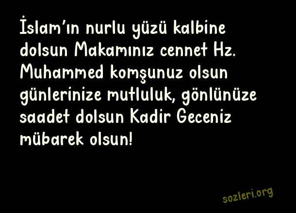 İslam’ın nurlu yüzü kalbine dolsun Makamınız cennet Hz. Muhammed komşunuz olsun günlerinize mutluluk, gönlünüze saadet dolsun Kadir Geceniz mübarek olsun! ( Kadir Gecesi İle İlgili Kutlama )