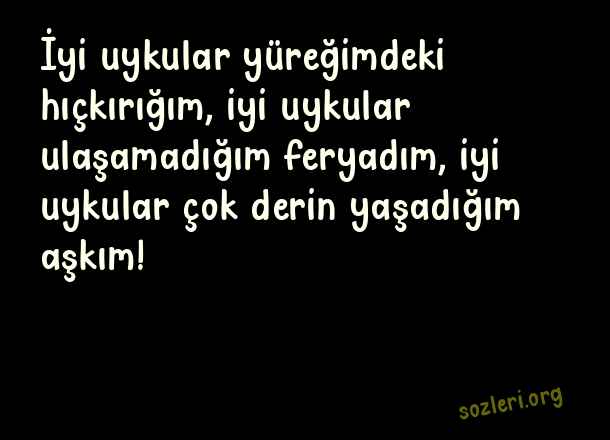 İyi uykular yüreğimdeki hıçkırığım, iyi uykular ulaşamadığım feryadım, iyi uykular çok derin yaşadığım aşkım! ( Whatsapp İyi Geceler )