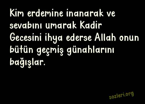Kim erdemine inanarak ve sevabını umarak Kadir Gecesini ihya ederse Allah onun bütün geçmiş günahlarını bağışlar. ( Kadir Gecesi Kutlama )