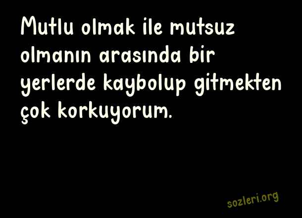 Mutlu olmak ile mutsuz olmanın arasında bir yerlerde kaybolup gitmekten çok korkuyorum. ( Geceye Bir Söz Bırak )