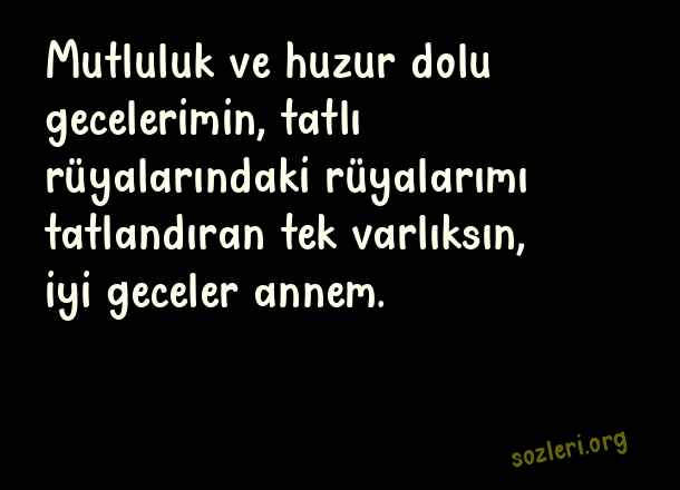 Mutluluk ve huzur dolu gecelerimin, tatlı rüyalarındaki rüyalarımı tatlandıran tek varlıksın, iyi geceler annem. ( Anneye İyi Geceler )