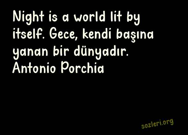 Night is a world lit by itself. Gece, kendi başına yanan bir dünyadır. Antonio Porchia ( Gece İle İlgili İngilizce Sözler )
