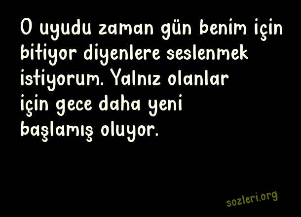 O uyudu zaman gün benim için bitiyor diyenlere seslenmek istiyorum. Yalnız olanlar için gece daha yeni başlamış oluyor. ( Geceye Bir Söz Bırak )